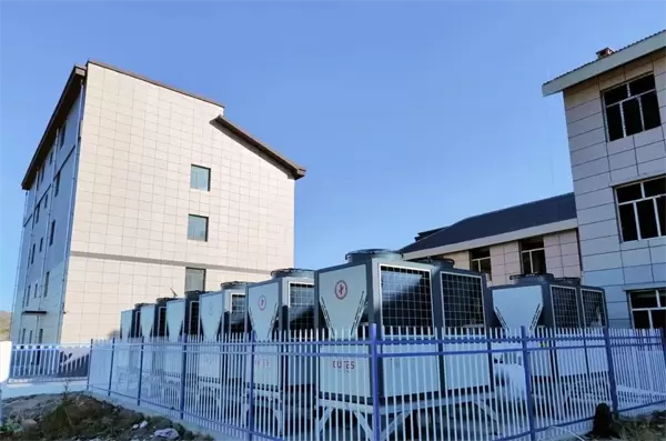 中广欧特斯团队根据老年人的采暖需求与当地实际环境,为养老院定制了专属的康养适老采暖解决方案,主机采用了11台60HP超低温空气源热泵采暖机组。
