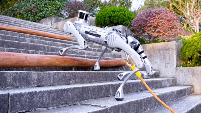 为了保证产品的高质量应用效果,宇树所有的零部件都是自主研发和制造的,经过精心设计和制造,具有高耐久性和可靠性。Unitree B2采用自主研发的关节电机,扭矩峰值提高到360N.m,增加了惊人的170%!它具有极高的稳定性和平衡能力,可以轻松跨越40cm高的台阶,应对攀爬楼梯、翻越山岭等特殊电力巡检场景,为解决复杂路况提供了卓越的解决方案。同时,Unitree B2还具有出色的越障和跳跃能力,最大跳远距离可达1.6m,可以更高效、灵活地进行抢险救援工作。