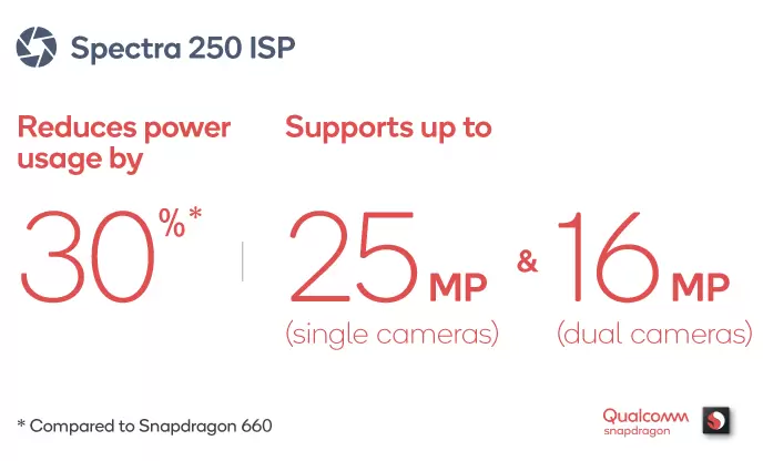 用户还可利用超高清视频拍摄功能录制视频,其功耗比前代产品可降低达30%。总体来看,Qualcomm Spectra 250 ISP支持高达2500万像素单摄像头和1600万像素双摄像头,使用户能够以超高分辨率捕捉重要瞬间。
