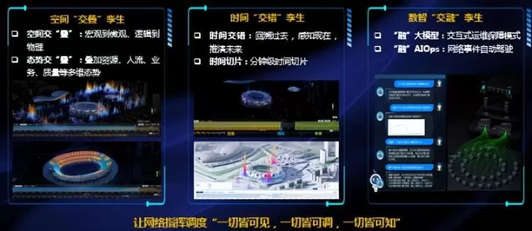 通过空间“交叠”孪生,浙江移动实现了可随时跳转任意分钟级的时间切片,支持回溯过去、感知现在、推演未来,让网络保障全程可视;通过与大模型交融,开创“交互式”运维保障模式,随时随地以“对话”方式获取最快、最准、最全的保障信息;通过与AIOps交融,实现故障全流程自动驾驶可视可管可控。这些创新技术,让网络指挥调度“一切皆可见,一切皆可调,一切皆可知”,有效支撑了杭州亚运会网络保障目标的达成。