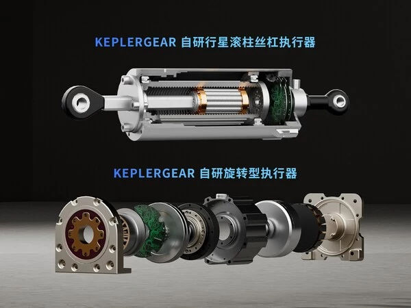 开普勒自研行星滚柱丝杠执行器和自研旋转型执行器,是先行者人形机器人的肢体硬核动力的来源。前者用以控制四肢,推力达到8000N,比普通电机定位更精准、爆发力更强、响应更迅速,能应对更多复杂任务;后者用于腰部及关节处,转动峰值扭矩达200N.m,重复定位精度达到0.01度,为驱动躯干提供强大的动力支持,并且能高效稳定运行。
