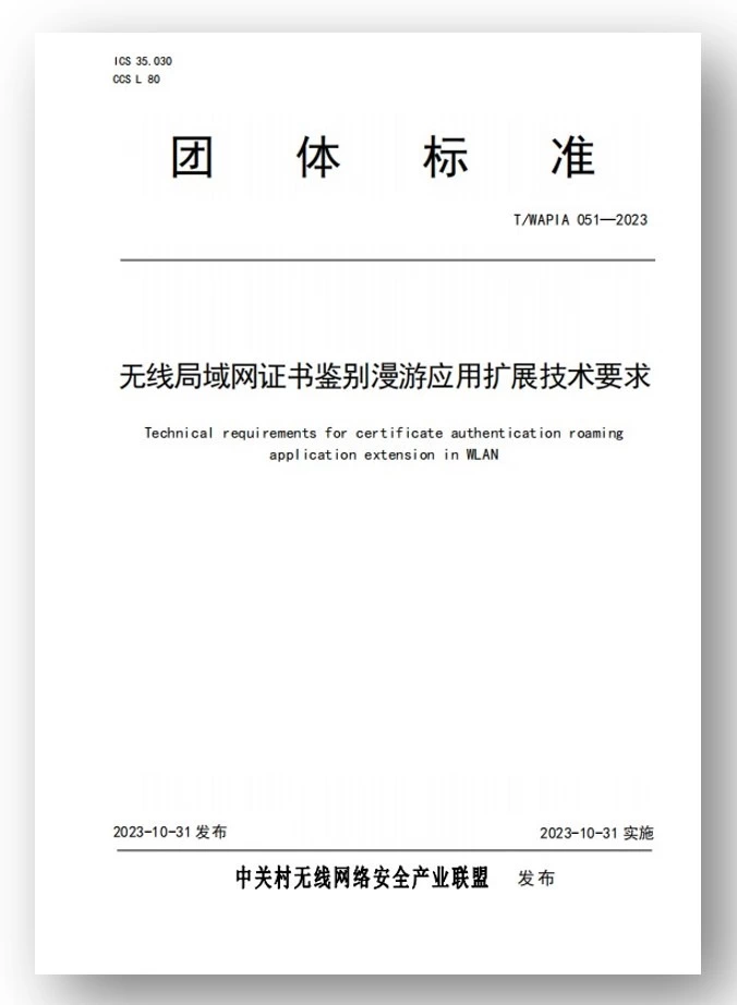 - WAPI产业联盟发布WLAN证书鉴别漫游应用扩展技术要求团体标准