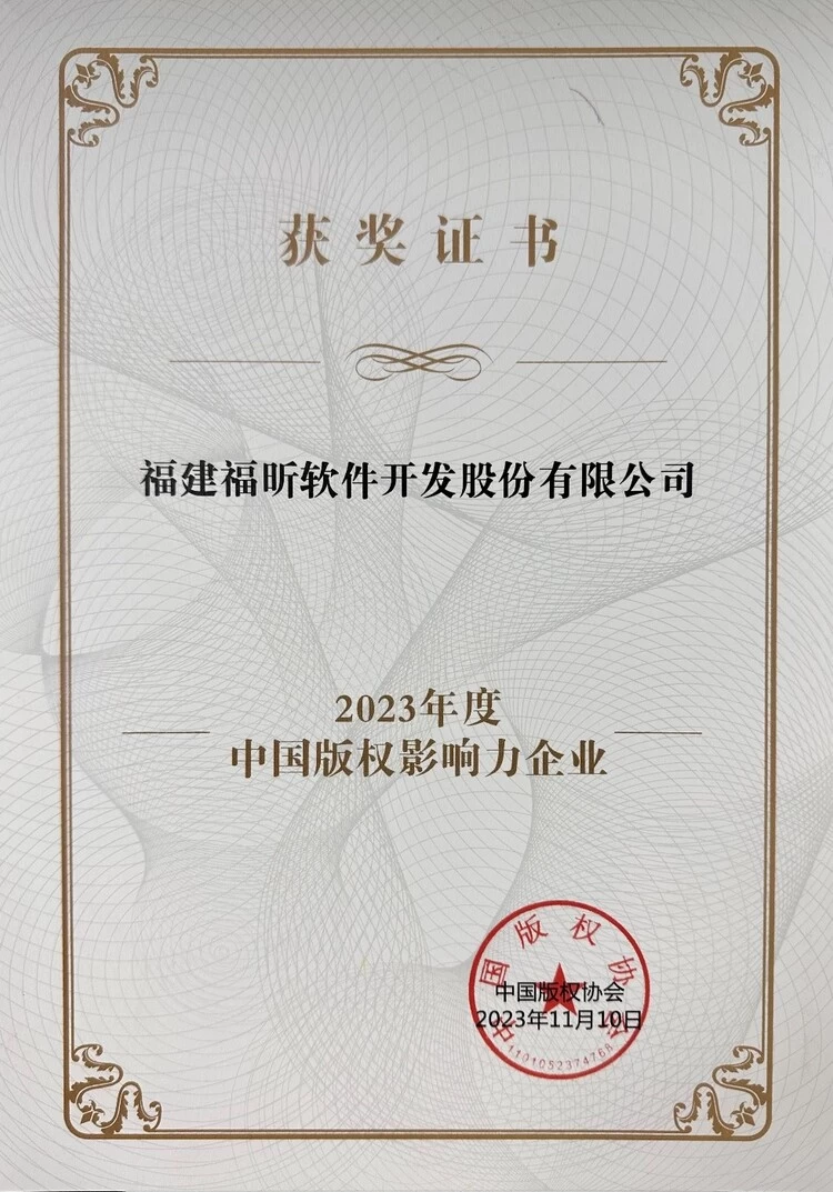 近日,由中国版权协会主办的2023年中国版权年会暨2023远集坊文化论坛在珠海成功举办。为鼓励创新、表彰先进、树立典型,中国版权协会在本次年会上表彰了2023年在版权方面做出突出业绩的单位,福昕软件荣获“2023年度中国版权影响力企业”称号。这是继“年度最具版权价值排行榜”、“年度全国版权示范单位”后,福昕在版权领域获得的又一奖项。