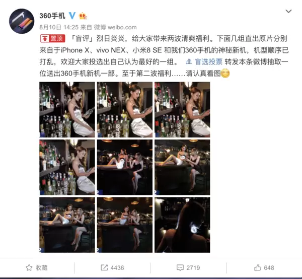 现在人们买手机时除了会关注手机的外观设计,还会关注手机的拍照表现。一款手机如果拍照表现出色,也会更受消费者欢迎。近日360手机官微放出了360新机与iPhoneX、vivo NEX、小米8SE的对比样张,并让网友投票选出最好的一组,不难看出360手机这一次对新机的拍照表现十分有信心。