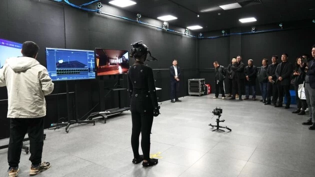 上海青瞳视觉科技有限公司销售总监胡世豪带领专家团队参观青瞳视觉的光学动捕棚以及与星光影视园合作打造的虚拟拍摄XR厅