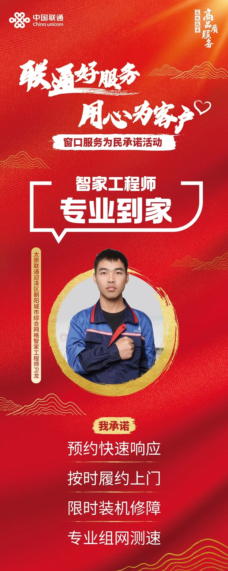 【联通好服务 用心为客户】奋力走在前,争当排头兵——山西联通智家工程师卫龙