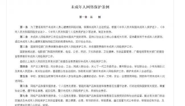 我国首部专门性的未成年人网络保护综合立法终于来了!上月底发布的《未成年人网络保护条例》旨在保障未成年人合法权益,为未成年人网络保护提供有力的法治保障。该条例将于明年1月1日起正式施行。