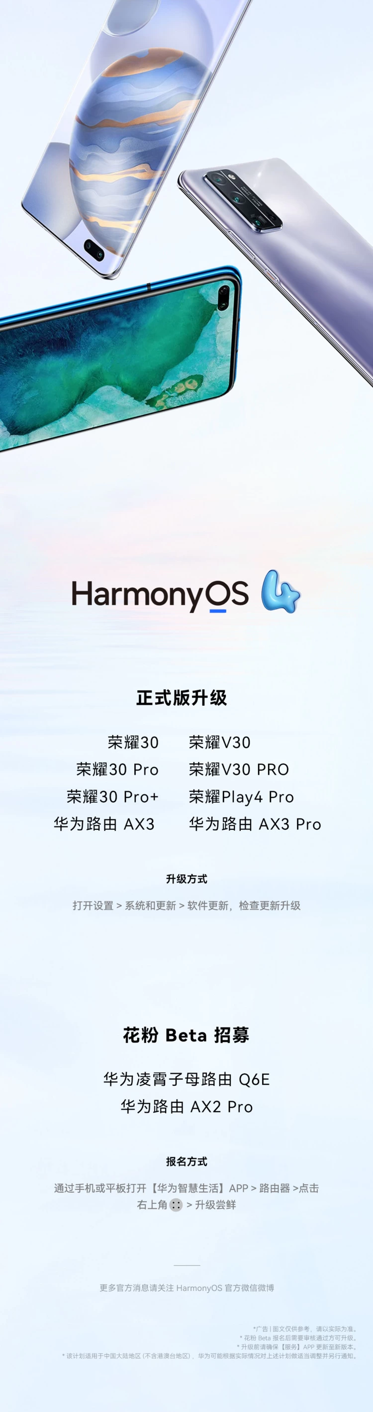 据悉HarmonyOS 4在公布百机升级进展计划后,其中荣耀30,荣耀V30,荣耀30Pro等6款机型已推送HarmonyOS 4正式版,各位荣耀老用户打开设置>系统和更新>软件更新,检查更新即可完成升级。