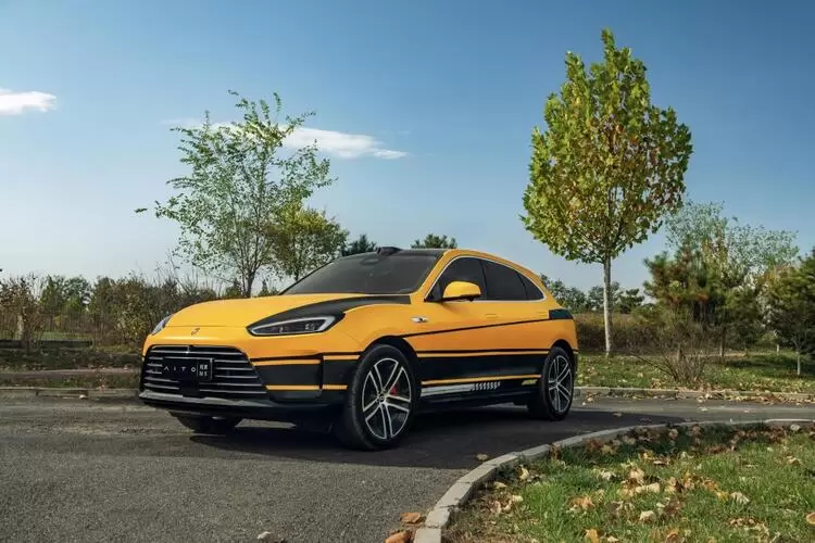 在这款涂装车独特的外观设计中,艺术家采用了大面积的“曙光黄”涂装车身,为车辆注入了强烈的视觉冲击,搭配黑色线条,令人眼前一亮,充满动力与活跃感。前机舱盖两侧以及车身周围的黑色拉花装饰进一步增添了运动感,这些装饰元素在视觉上突出了车辆的动感特质,使其更加富有活力。