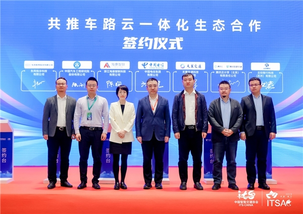 作为中国电信布局车路协同的重要支撑力量,天翼交通定位为面向自动驾驶的国家级的车路协同智能交通运营与服务提供商。在车路云一体化的建设方案已融入普遍城市的数字化整体建设中的当下,只有车、路、云、网、图、数据和安全等各方协同发力,未来才可以加速到来。为进一步推动车路云一体化生态的规模化落地和常态化运营,在大会期间,天翼交通科技有限公司、中国汽车工程研究院股份有限公司、浙江海康智联科技有限公司、东风悦享科技有限公司、腾讯云计算(北京)有限责任公司、云创智行科技(苏州)有限公司等生态伙伴,举行共推车路云一体化生态合作签约,加快以数字化开拓“交通强国”建设之路的进程,实现共创智慧交通出行新生活的愿景。