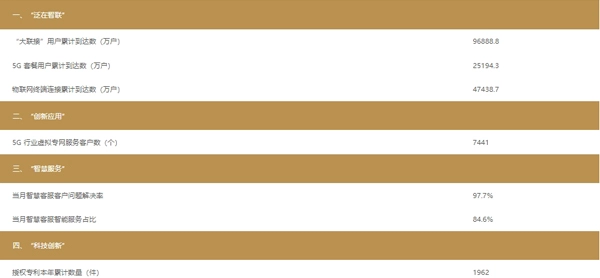 数据显示,截至2023年10月份,中国联通“大联接”用户累计达9.68888亿户,物联网终端连接累计达4.74387亿户,5G行业虚拟专网服务客户数达7441个,当月智慧客服服务问题解决率达97.7%,当月智慧客服智能服务占比达84.6%,授权专利本年累计数量达1962件。