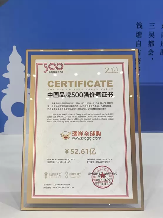 中国品牌500强榜单出炉,瑞祥科技集团旗下瑞祥全球购强势入选