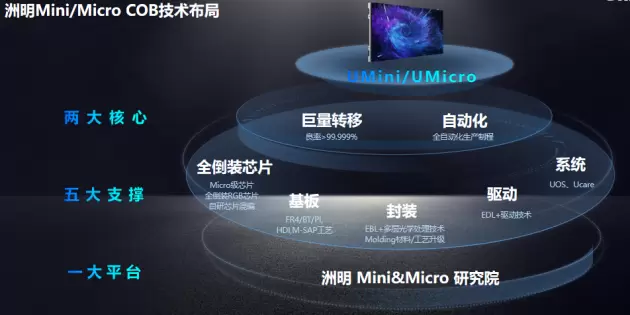 洲明集团在这一领域已经耕耘多年,旗下产品已经完成了对芯片、基板、封装、驱动、系统五工艺的“升级”,做好充分技术储备。