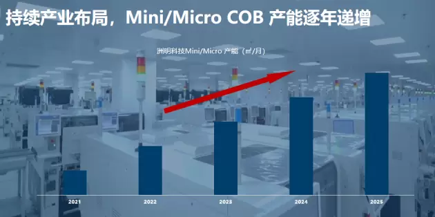 面对亟待爆发的COB市场,洲明科技计划产能每年递增30%。洲明相关负责人认为,COB技术已具规模化基础,COB今年的市场总份额已经超过10%的行业规模,预计在三年内可实现35~50%的替代率。