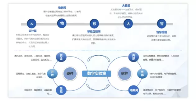 此外,实验室数字化技术的应用还可以显著提升实验室工作效率与管理水平,同时为实验数据的采集、分析和利用提供更为便捷和精准的方式。数字化技术涵盖的诸多方面,包括但不仅限于实现基于5G技术支撑的便捷化移动办公;对实验设备进行物联感知,借助物联网技术实现工艺数据、产品数据、生产进度数据、设备状态数据的智能采集与动态分析、智慧调度;以及借助智能检测和AI数智化管理等技术进一步提升实验室的全方位智能化管理效率和决策水平。