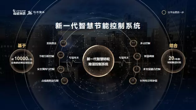 全域智慧转轮除湿解决方案引入了嘉盛环境最新的信息化技术,构建了一个智慧节能控制系统。嘉盛环境基于超10000+台设备的运维反馈信息,结合20多年的转轮除湿经验,展开双向突破,该系统实现了智慧诊断、智慧修复、自主学习与适应、智慧安全管控以及智慧节能控制,多方面互联实现新一代智慧转轮除湿控制系统。这是湿度管理领域一次技术的飞跃,将用户从繁琐的操作中解放出来,享受科技带来的便捷。
