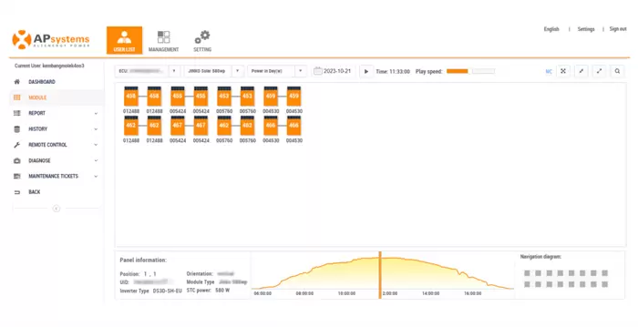 同样深受业主喜爱的还有微型逆变器的组件级运维功能。电站运行后,每天下午,业主都习惯于使用电脑或手机APP,查看一下系统的实时发电情况,比如切换到“组件”页面,看看每一块组件的发电情况,这让业主觉得光伏发电无比智能,充满了科技感,对光伏发电情况做到“了如指掌”。