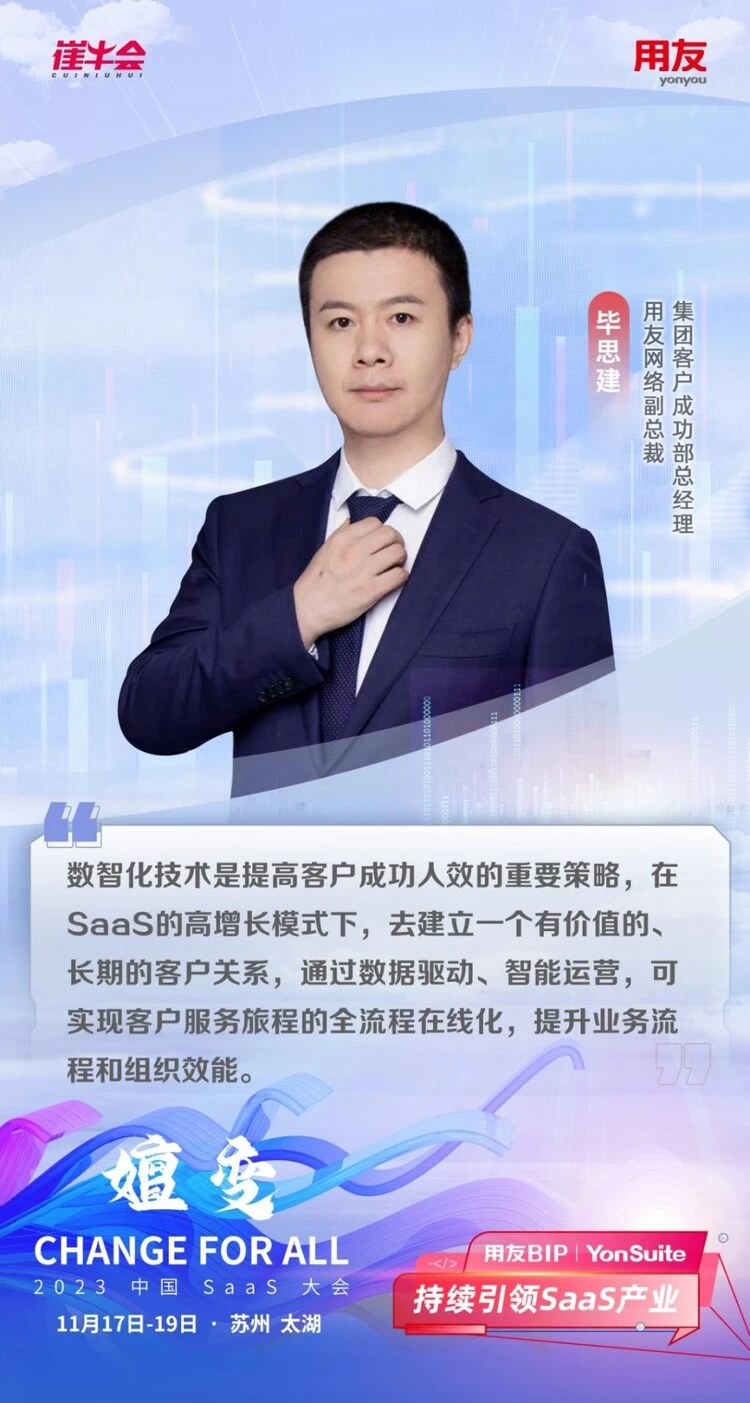 毕思建还特别强调,数智化技术是提高客户成功人效的重要策略,在SaaS的高增长模式下,建立一个基于有价值的、长期的客户关系至关重要。通过数据驱动和智能运营,可以实现客户服务旅程的全流程在线化,提升业务流程和组织效能。