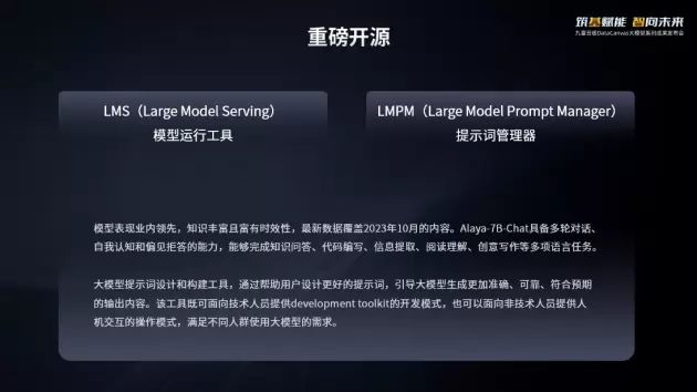 Alaya-7B大模型、LMS模型运行工具、LMPM提示词管理器现已重磅开源,欢迎前往【九章云极DataCanvas官网-开源项目板块】获取开源地址。