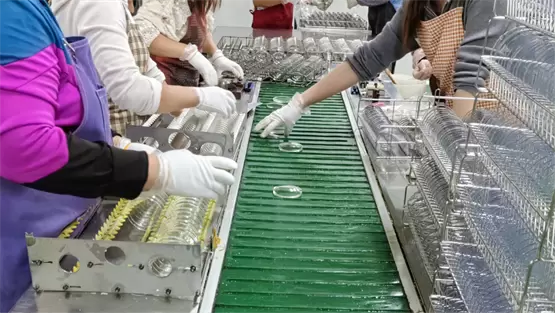传统的人工脱模效率低产品易损耗。在镜片生产过程中,脱模是一道重要的收尾工序,整个过程需要保证镜片的完整性和清洁度,同时还需要提高脱模效率。传统的脱模工作一般需要5名工人完成,历经撕胶带——镜片铸模分离——镜片铸模分类回收几大主要步骤。脱模工序人工操作耗时长、效率低;不规范操作下,还会造成铸模及镜片的损坏和污染。
