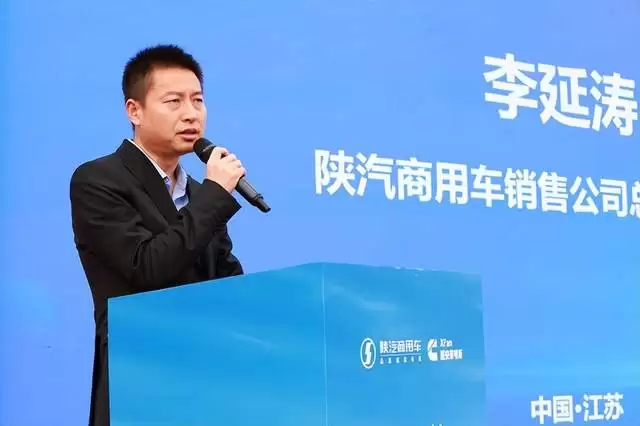 【陕汽商用车销售公司总经理助理李延涛、西安康明斯发动机有限公司营销中心营销部总经理杨海山、连云港和盛顺汽车销售服务有限公司总经理包明清、连云港久通物流有限公司总经理张欢共同见证陕汽德御Q300牵引车江苏区域上市】