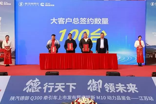 在陕汽集团庞大的市场保有量加持下及陕汽德御Q300牵引车自身强大的性能表现下,发布会现场陕汽商用车与连云港南洋物流、连云港久通物流、连云港润亮物流等属地大客户签约仪式,更携手连云港南洋物流完成全国首批陕汽德御Q300牵引车产品交付。同时,陕汽商用车公布了现场购车优惠政策,超值钜惠的加持下,一众嘉宾、卡友更是掀起了一股抢订热潮。