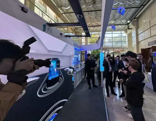 在优立展位,参观全息墙的观众络绎不绝。全息墙利⽤光影呈现出⾝临其境的全息世界,带来“你不只是观看内容,你整个⼈就⾝在其中”的虚实融合及沉浸式体验。