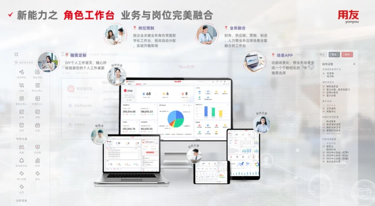 角色工作台:对于中大型企业,管理与业务岗位众多,且在数智化时代的背景下,产业链级应用和社会化连接日益增强。YonSuite不仅预置了45个标准工作台,还提供高度自定义能力,确保每个用户的界面和功能完全匹配其岗位需求。此外,工作台支持自定义业务流程和智能决策大屏,提升操作体验。