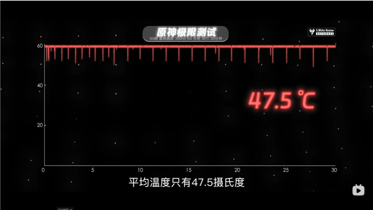 这还没完,在30度室温,5G连接,350NIT亮度,充电跑30分钟原神的魔鬼测试下,红魔依旧坚挺的拉满一条直线,且平均温度只有47.5度。可以看到,越是极限的测试场景,越能体现红魔这次在第三代骁龙8调教上的出色表现,这颗芯片的真正实力,在红魔9 Pro这款专业游戏手机上,得到了最淋漓尽致的体现。