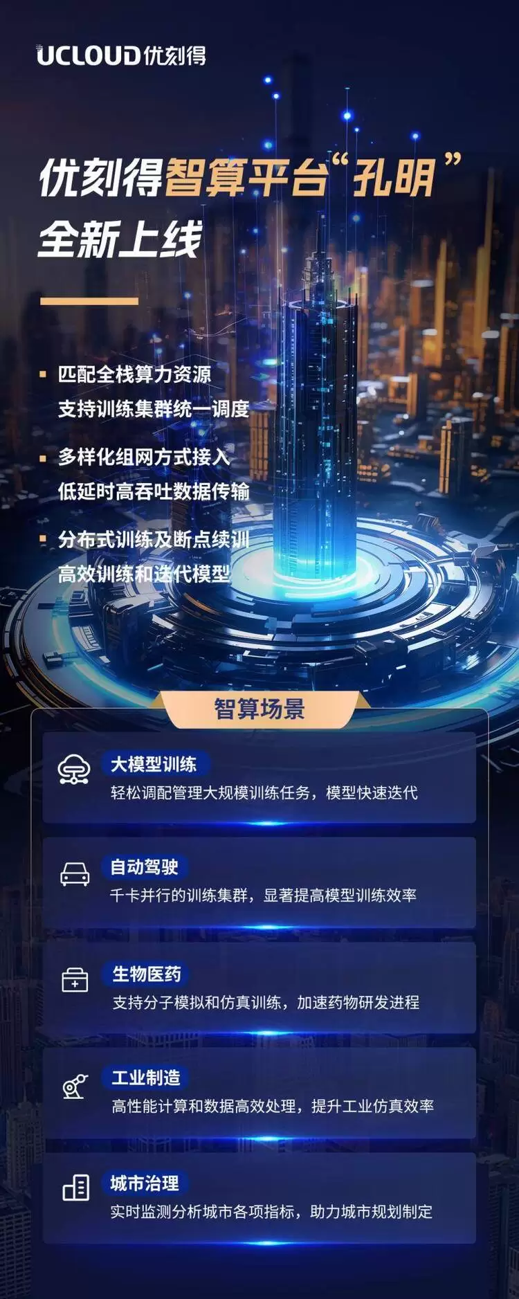 在不久的将来,“孔明”智算平台希望发展成为一个智能计算的核心枢纽,而且成为推动产业数字化发展的重要引擎。优刻得将持续践行创新精神,积极响应市场需求,以稳定可靠的平台和全链路的服务支持,助力企业实现数字化转型和智能化升级。