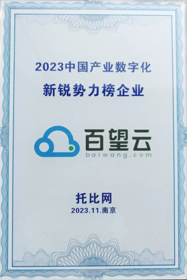 掘金产业数字化,百望云荣登2023中国产业数字化新锐势力榜