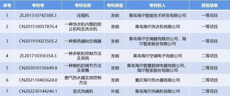 质、量领跑行业!海尔7项专利入选2023年度轻工业专利成果名单