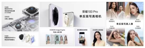 荣耀100系列搭载单反级写真相机,凭借硬件跃级与算法升维实现了全新迭代。荣耀100系列前后摄均拥有写真人像引擎,通过单反级光学效果、写真级立体面容和专业级人像光影拍出写真人像空气感。单反级光学效果能够使焦内外柔美虚化过渡,人像背景渐进虚化,层次自然;写真级立体面容带来更具原生感的自然肤质肤色,使人像五官的光影更为立体精致;专业级人像光影让画面明暗有度,光影之间更具大片质感。不仅如此,全新升维的写真人像引擎还实现了更加智能、丰富的美颜功能与真实、自然的美妆效果,为用户提供面部黄金比例调优、写真级肤色调优、4D自然立体美妆、自定义美妆配方等全新影像体验,让人像美得更自然、更自信。