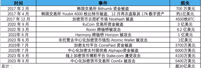 目前已明确统计到的Lazarus攻击加密领域的安全事件和损失如下: