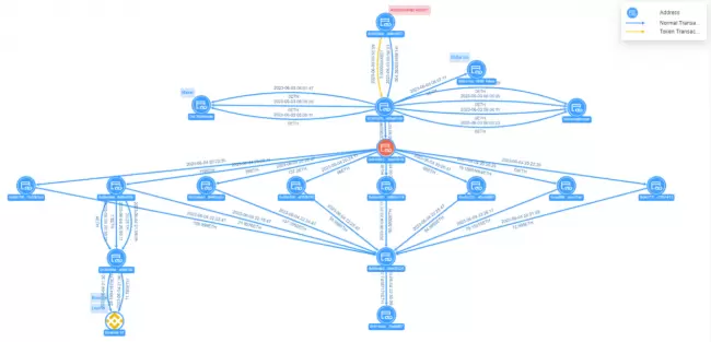 (3)被盗资金转出:使用归集地址通过Tornado.Cash将钱洗出。这便完成了全部的资金转移过程。