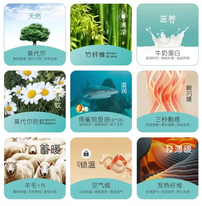 首先,久岁伴在面料上精挑选,在工艺上严把关,为孩子打造适应四季变化的内衣。线下购物场景中,面料手感、款式、花型、工艺等都是打动消费者的重要因素,久岁伴提供包括莫代尔、竹纤维、牛奶蛋白、空气绒等丰富的面料选择,而四针六线、立体剪裁、三角裆剪裁、草木健康染则是其独具匠心的内在工艺。