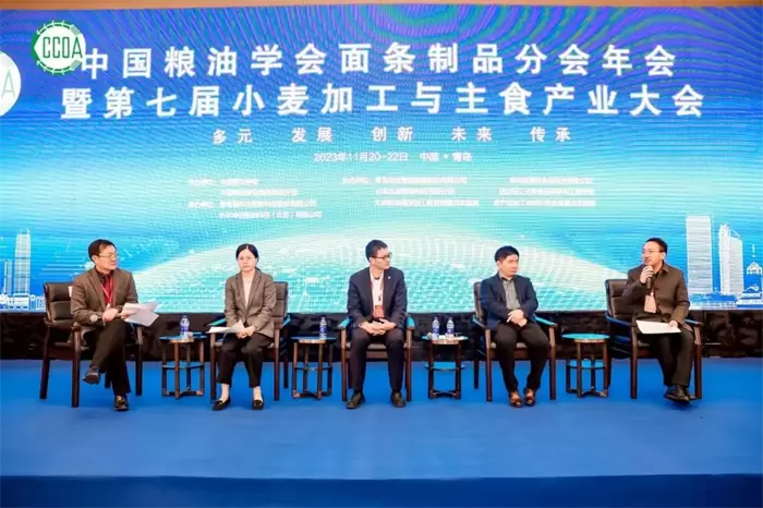 11月21日,中国粮油学会面条制品分会年会暨第七届小麦加工与主食产业大会在青岛召开,本次大会由中国粮油学会面条制品分会主办,青岛海科佳智能科技股份有限公司承办,以“多元 发展 创新 未来 传承”为主题,汇聚了来自全国的300余名知名专家学者,企业家、学生代表展开对话交流。