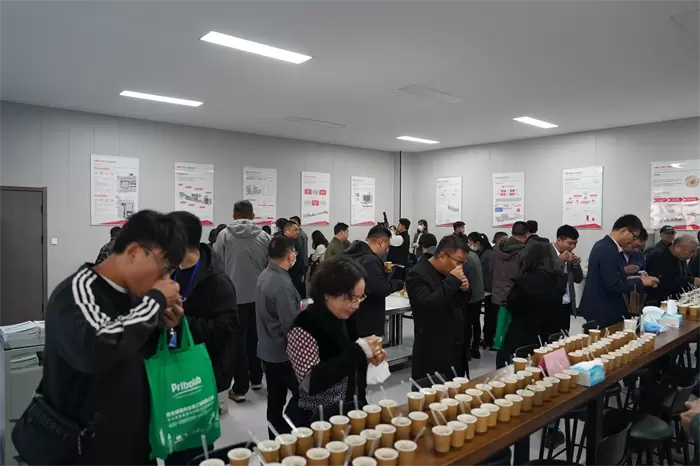 在参观海科佳米面制品实验室时,大家品尝了由不同生产工艺制作的手擀面、鲜湿面以及米粉,并详细了解了手延空心面的生产工艺、装备仿生制面过程等内容,对米面制品的文化传统、工艺特点、生产过程有了更深的认识。