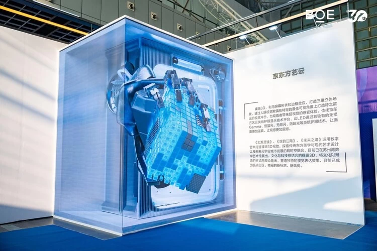 在数字文创区,京东方艺云裸眼3D数码相框通过超多视点设计、云端2D转置3D等技术,增强显示的真实感和沉浸感,观众在不需要任何辅助设备(如3D眼镜、AR设备等)的情况下,可以从不同视角、不同方位获得极具空间感、立体感的视觉体验;更有行走的个人艺术馆——“百变墨水屏”手机壳,不仅实现用户在各城市、景区打卡内容一键投屏展示,还通过文化艺术IP联名,做到海量资源免费下载,让艺术触手可得。