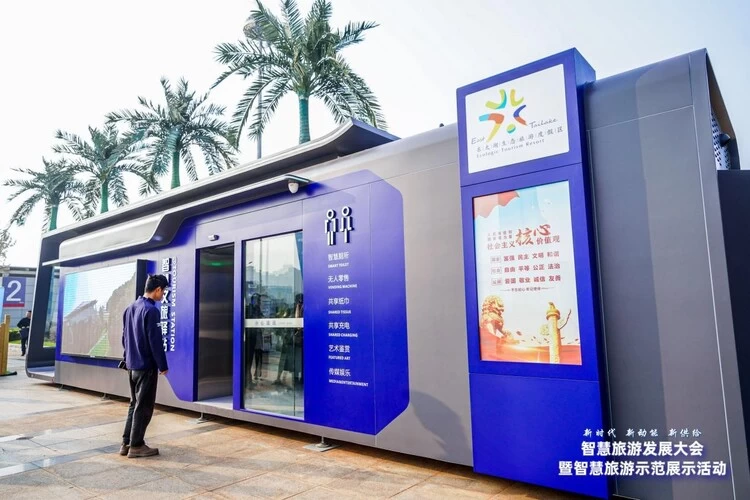 在智慧旅游新空间区,京东方艺云通过BOE画屏生动地呈现了以数字技术赋能智慧旅游全场景的标杆案例,已打造宜宾“三江六岸”数字化、“苏州湾数字艺术馆”、温州“眼谷小镇”、“智慧文旅驿站”、北京“辉煌中轴”专题展等一系列沉浸式文旅新场景,为大众带来全新的数字文旅体验,更好地激发文旅消费新活力。其中,由京东方艺云建设的“智慧文旅驿站”以其移动化、便捷化、自处理为特色,选用优质钢材打造,自带粪污处理系统,模块化组合安装,与公交站、地铁站、景区游客中心、度假区栈道、城市街区等场景完美融合,提升游客在使用过程中的舒适感和幸福感。