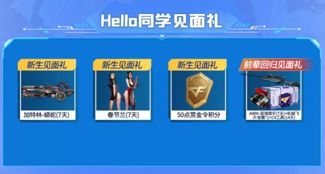 玩家首次登入Hello语音,即可获得“Hello新同学见面礼”,获取赏金令积分、春节兰等奖励;回归用户则有独立奖励,可获得C4工具、AWM-深海猎手等道具。