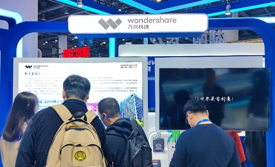 展会现场,万兴科技面向全球展商及参会观众,分享了以万兴播爆为代表的AIGC领域最新技术成果及落地应用,引得不少参会者驻足。