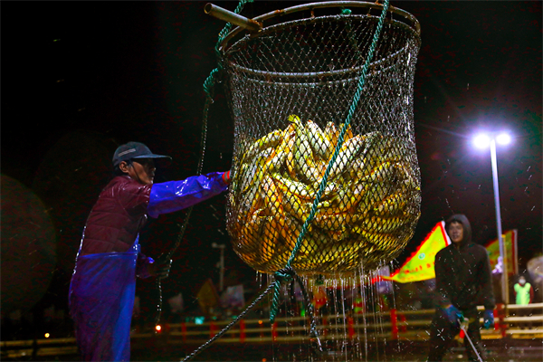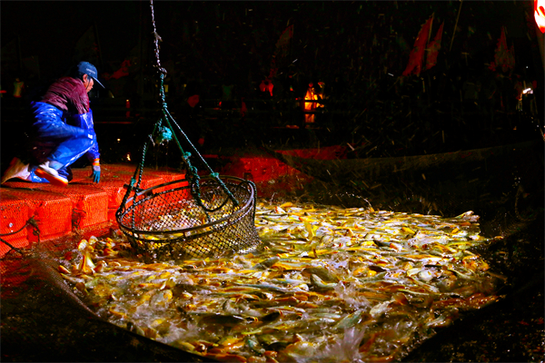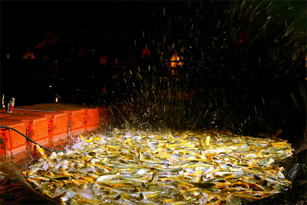 自古以来,捕捞大黄鱼都在夜间进行,这是因为大黄鱼体内的金色色素被强光照射就会变白。为了能捕捞到象征“富贵吉祥”的金黄色大黄鱼,渔民们往往披星出海,戴月而归。