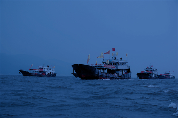 在夜捕大典开始前,还需要举行盛况空前的海祭仪式。跳祭旗舞、饮开海酒,以此祈祷未来一年渔获丰收。震撼人心的传统仪式,寄托着渔家人对海洋、大黄鱼深厚的情感。