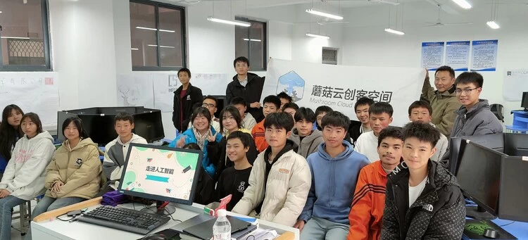 此外,11月24日至25日,蘑菇云创客空间的章鱼老师和朱佩清老师前往云南彝良的新城中学、彝良民族中学、彝良职业高中,为每所学校的50名学生带来了人工智能体验课。在这些课程中,学生们体验到了人工智能图像识别、人工智能写文章、人工智能画图等先进技术,打开了他们的视野,提升了他们的认知水平。