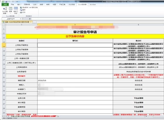 单击新建一个报告号申请表,根据E列的备注栏来填写,填写完成后保存。