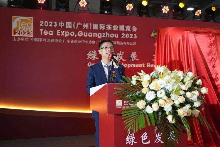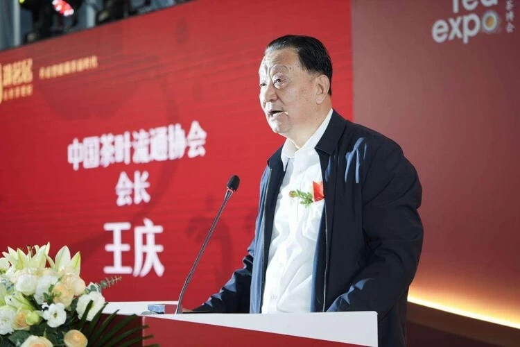 (中国茶叶流通协会会长王庆先生上台致辞)