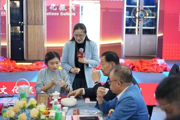 (在藏茶品鉴环节中,吴垠女士与嘉宾及茶艺师亲切交流)