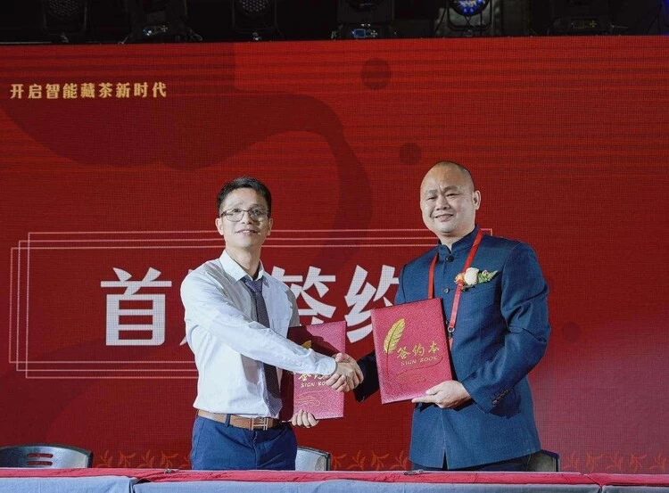 (黄龙先生与快乐普洱创始人吴世海先生现场签署合作协议)