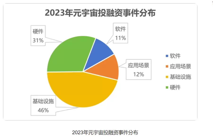数据显示,上半年,国内元宇宙基础设施板块共发生110起投融资事件,占全年总融资数的46.4%;元宇宙硬件板块共发生74起投融资事件,占全年投融资事件总数的31.2%。